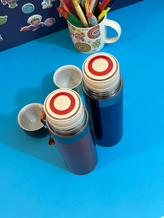 قمقمه تمام استیل بدون نشتی با درب دکمهای — ضدزنگ و قابل حمل