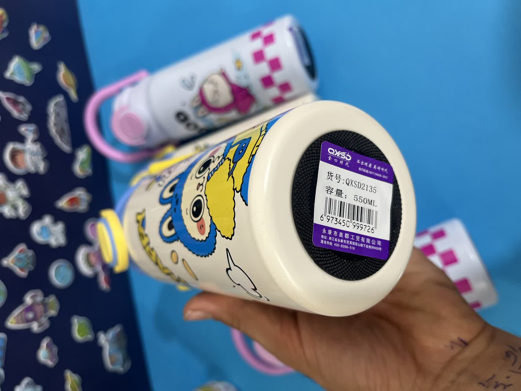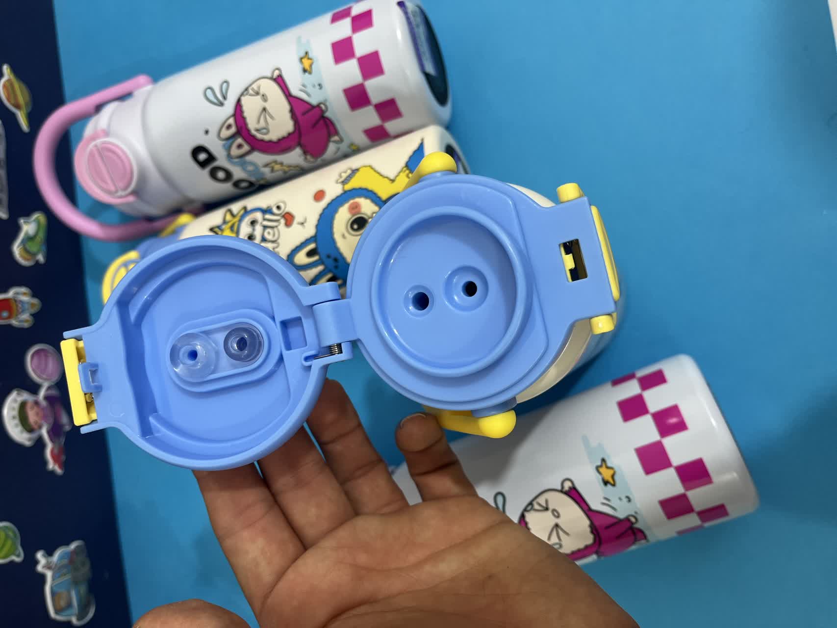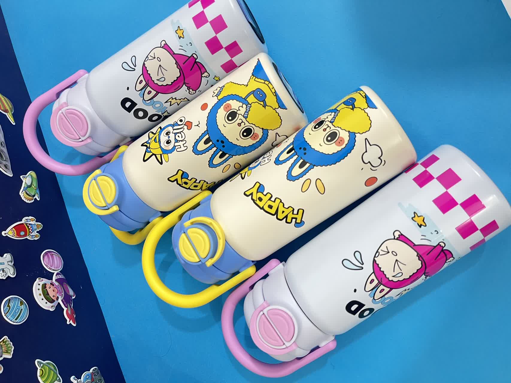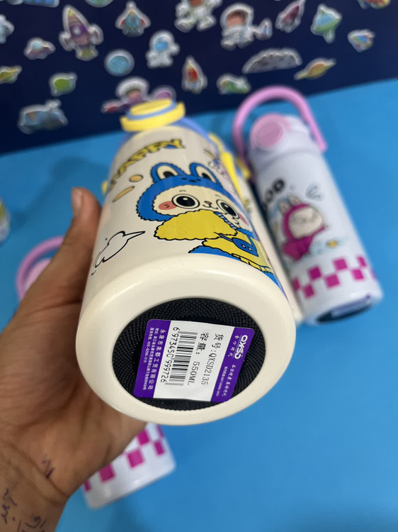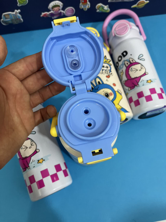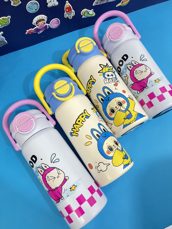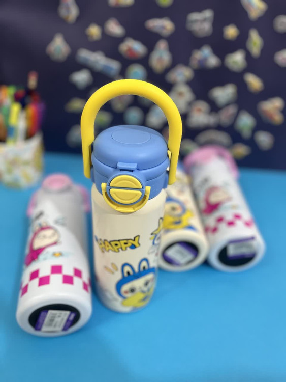 قمقمه استیل طرح لبوبو با طراحی جذاب و دسته دار، برای سرو و نگهداری مایعات در محیطهای خانگی کاری و مدرسه طراحی شده است.