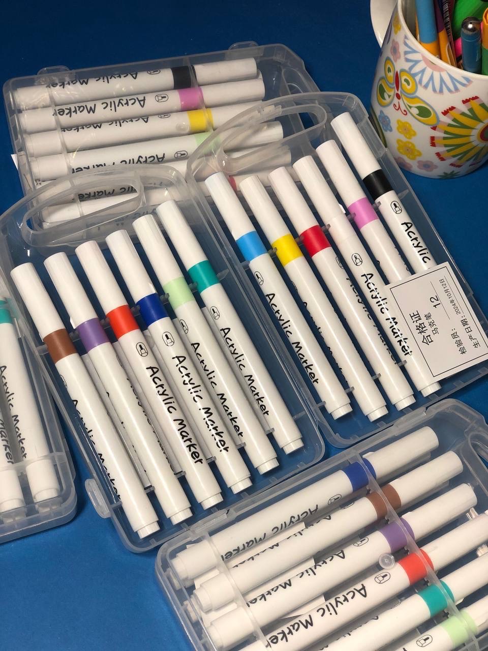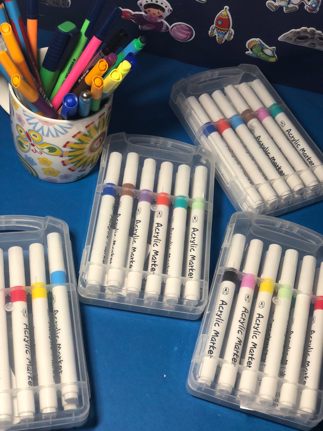 - 12 عدد ماژیک اکرلیک با رنگهای متنوع (قرمز، آبی، سبز، زرد، بنفش، نارنجی،و...)