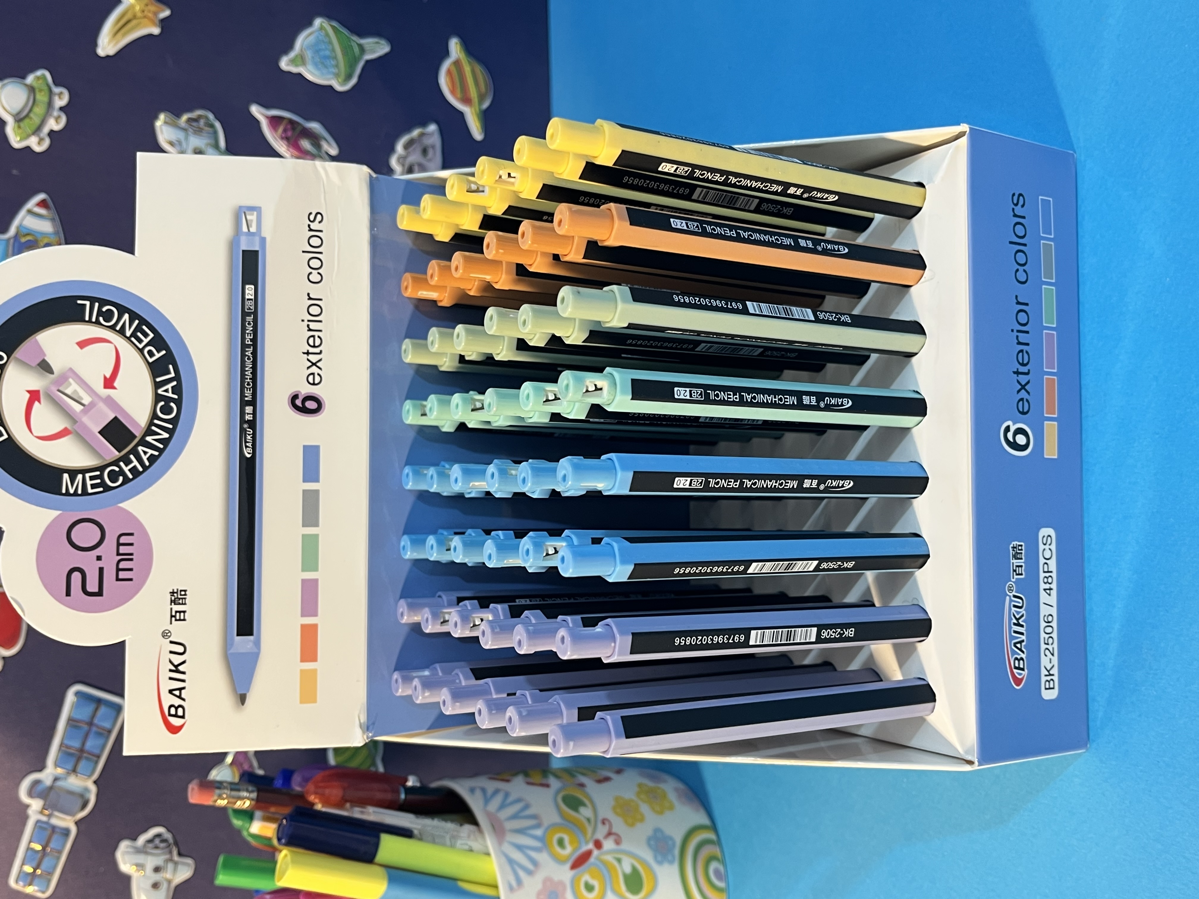 مداد نوکی با نوک دو میلیمتر (به اندازه نوک مداد معمولی) و تراش کوچک قابل جداشدن، طراحی ویژهای برای دانشآموزان ابتدایی دارد که به دلیل نیروی دست کم و فشار نامناسب روی مداد، اغلب با مدادهای نازک مشکل دارند. این مداد نوکی با نوک ضخیمتر نسبت به مدادهای معمولی، به دانشآموزان کمک میکند تا به راحتی روی کاغذ بکشند و فشار بیش از حد نکنند، زیرا نوک ضخیمتر از نظر فیزیکی مقاومت بیشتری دارد و کمتر خرد میشود. نکته برجسته این مداد، داشتن یک تراش کوچک قابل جداشدن است که در بالای نوک مداد قرار دارد. این تراش به صورت جداگانه قابل استفاده است و به دانشآموزان اجازه میدهد تا نوک مداد را به راحتی و با دقت تیز کنند. با استفاده از این تراش، نوک مداد به سرعت و بدون نیاز به تراش دستی یا تراش بزرگ، تیز میشود و کار کردن با آن راحتتر میگردد. این طراحی به ویژه برای کودکانی که هنوز مهارت دستی کاملی ندارند، بسیار مناسب است، زیرا نوک ضخیمتر از نظر ایمنی بهتر است و از خرد شدن سریع نوک جلوگیری میکند. همچنین، از آنجا که دانشآموزان ابتدایی معمولاً مداد را با فشار زیاد میکشند، مداد نوکی با نوک نازک به سرعت خرد میشود و نیاز به تراش کردن مداوم دارد. اما این مداد با نوک مناسب و تراش کوچک قابل جداشدن، هم از نظر عملکرد و هم از نظر دوام، گزینهای عالی برای آنهاست. :